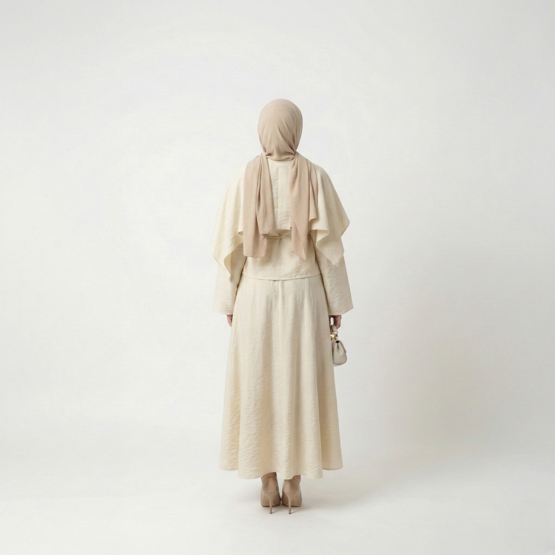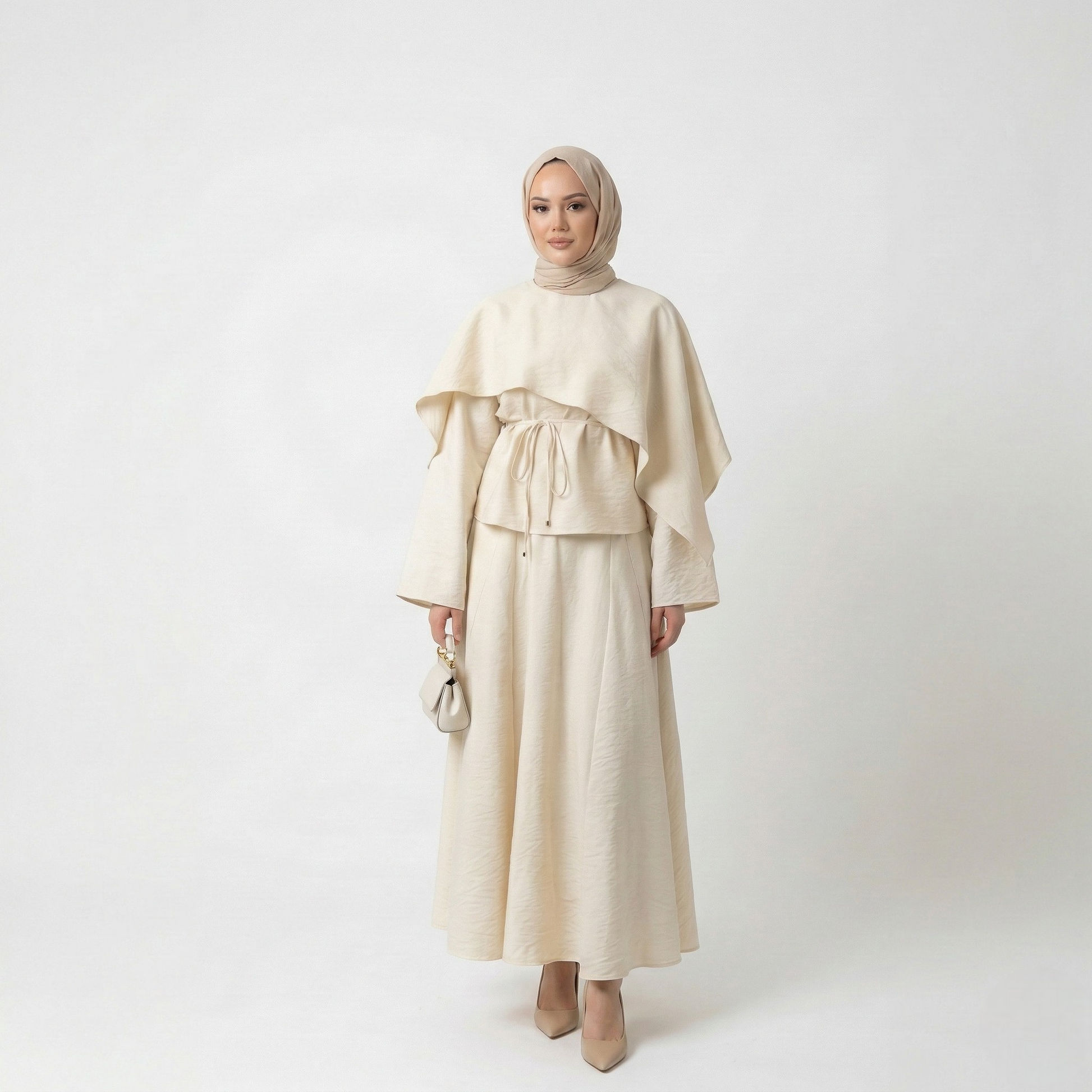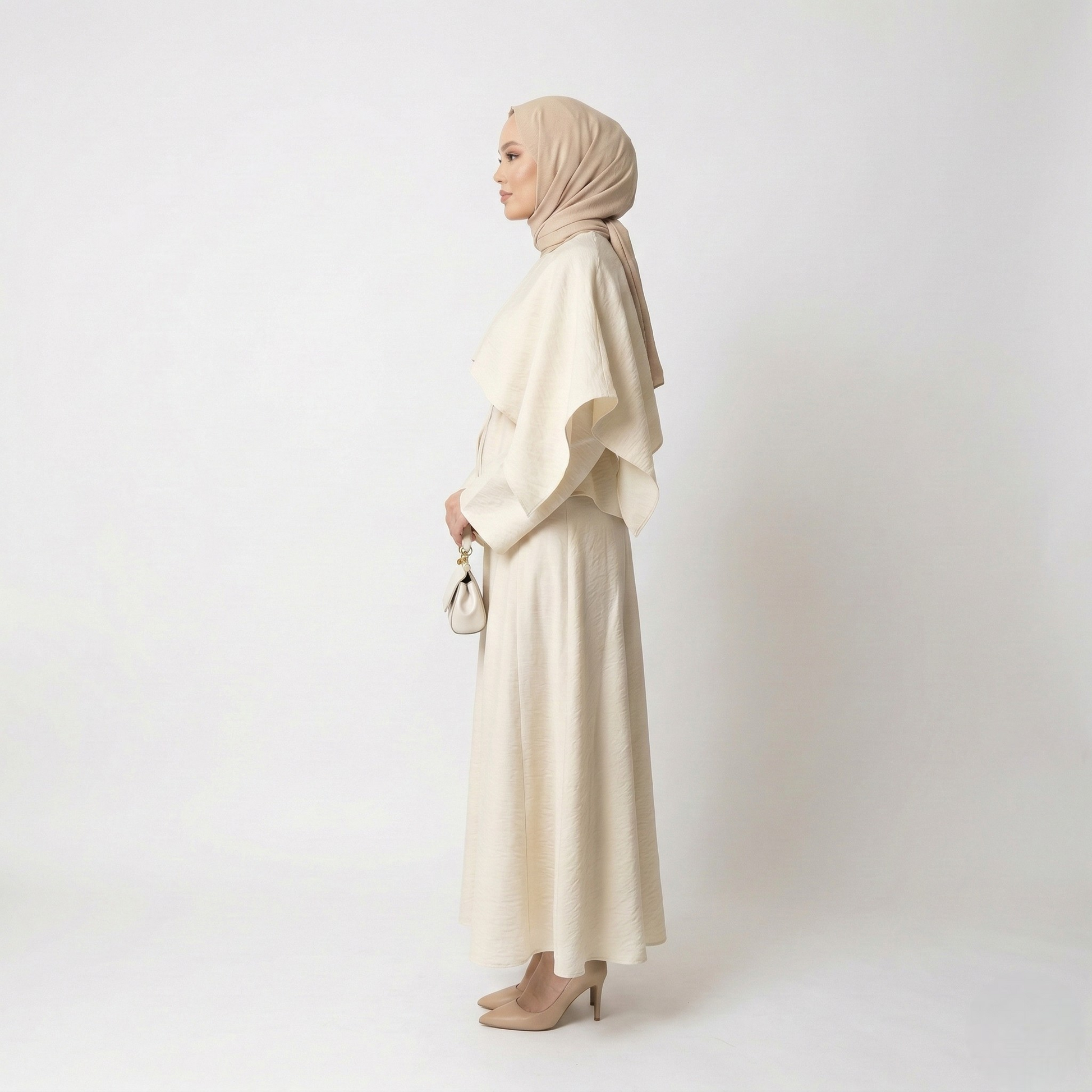 Een verfijnde set met een opvallende gelaagde top en een rok met een vloeiende pasvorm. De rok heeft een lengte van 100cm. De top creëert een speels silhouet door de zachte lagen, terwijl de rok zorgt voor een elegante en comfortabele uitstraling. Perfect voor een moderne, stijlvolle look met een uniek karakter.